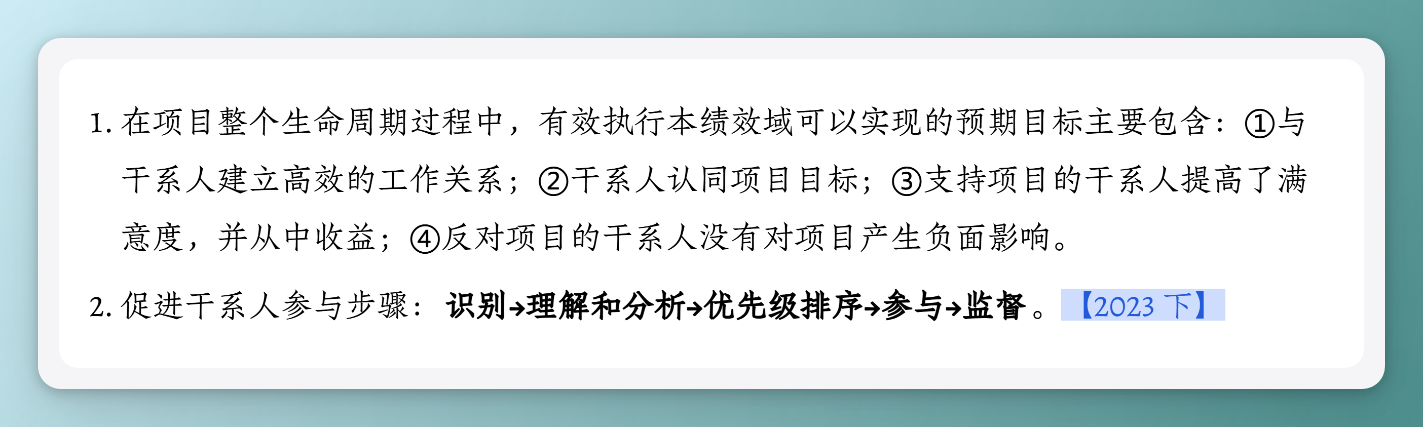 - 信息系统生命周期:系统规划(可行性分析与项目开发计划)、系统分析(需求分析)、系统设计(概要设计、详细设计)、系统实施(编码、测试、试运行、验收)、系统运行和维护等阶段。(记忆:信息系统生命周期也可划分为立项、开发、运维、消亡 4 个阶段)