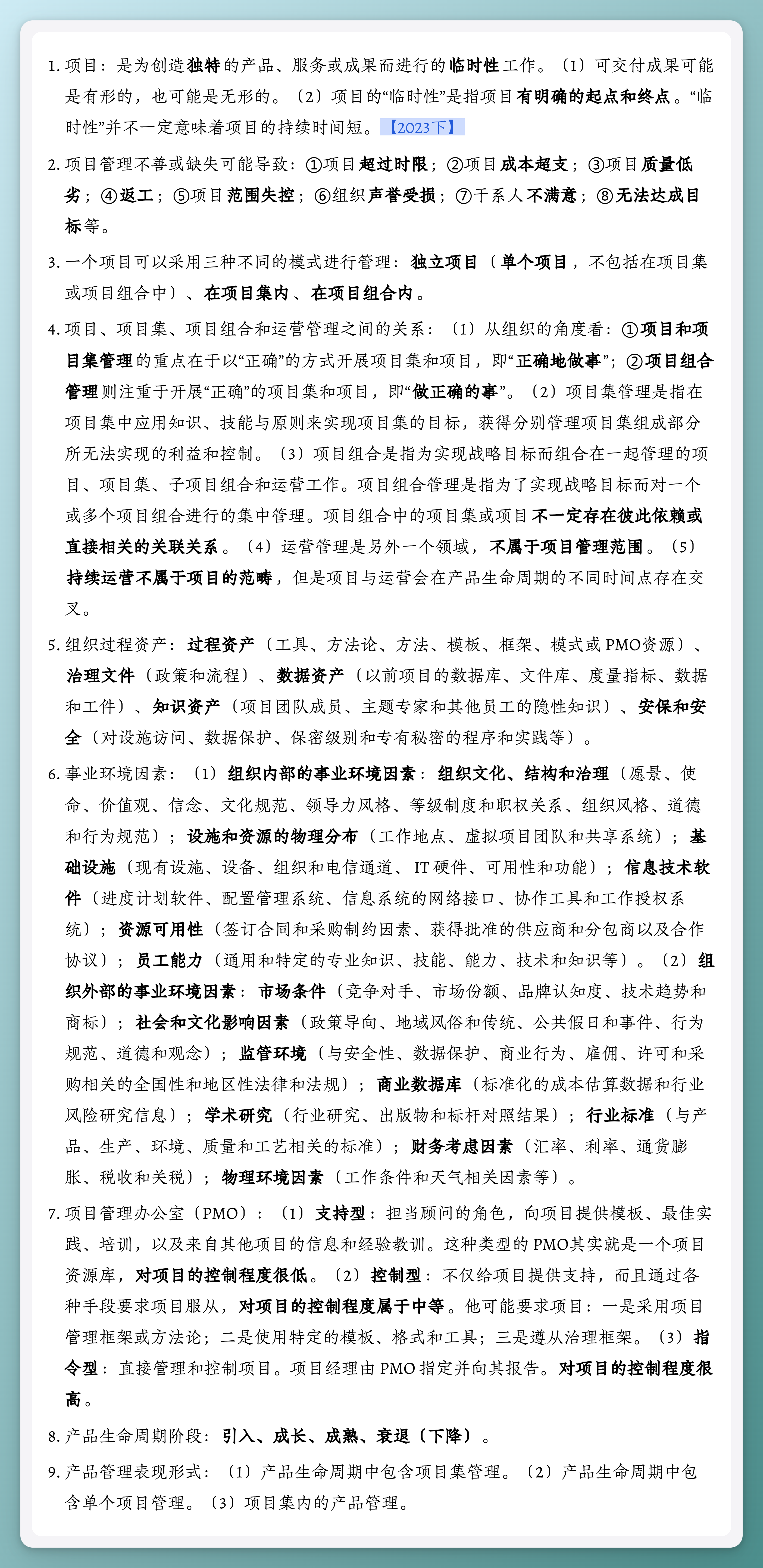 事业环境因素:(1)组织内部的事业环境因素:组织文化、结构和治理(愿景、使命、价值观、信念、文化规范、领导力风格、等级制度和职权关系、组织风格、道德和行为规范);设施和资源的物理分布(工作地点、虚拟项目团队和共享系统);基础设施(现有设施、设备、组织和电信通道、 IT 硬件、可用性和功能);信息技术软件(进度计划软件、配置管理系统、信息系统的网络接口、协作工具和工作授权系统);资源可用性(签订合同和采购制约因素、获得批准的供应商和分包商以及合作协议);员工能力(通用和特定的专业知识、技能、能力、技术和知识等)。(2)组织外部的事业环境因素:市场条件(竞争对手、市场份额、品牌认知度、技术趋势和商标);社会和文化影响因素(政策导向、地域风俗和传统、公共假日和事件、行为规范、道德和观念);监管环境(与安全性、数据保护、商业行为、雇佣、许可和采购相关 的全国性和地区性法律和法规);商业数据库(标准化的成本估算数据和行业风险研究信息);学术研究(行业研究、出版物和标杆对照结果);行业标准(与产品、生产、环境、质量和工艺相关的标准);财务考虑因素(汇率、利率、通货膨胀、税收和关税);物理环境因素(工作条件和天气相关因素等)。